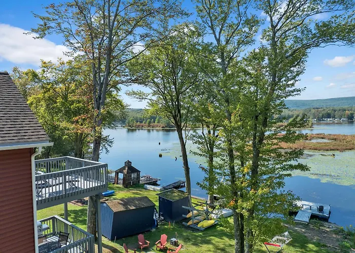 L'aéroport le plus proche est international de Wilkes-Barre/Scranton, situé à 41 minutes en voiture de cette villa Lakefront, Hot Tub, Dock, Kayaks, Amazing Views.